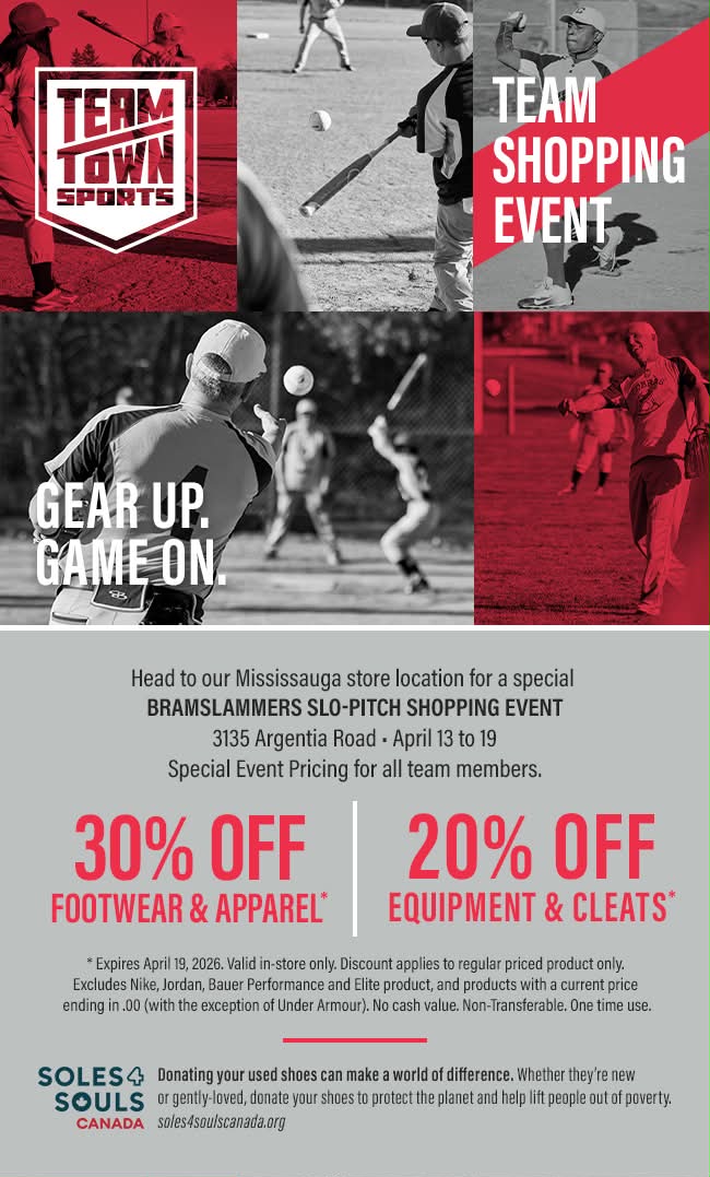 Team Town Sports in Meadowvale is giving a shopping week (April 13 to 19) to Bramslammers.